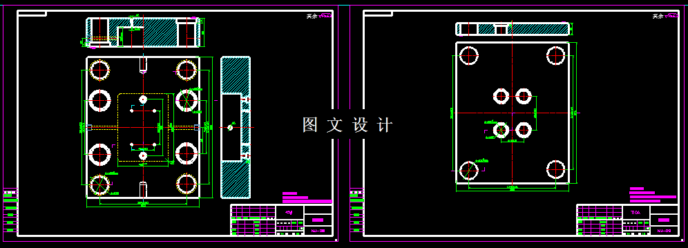 将浇口设计在工件的底面,设计点浇口三板模,选择一模四件,对称分布,详细计算后,绘制模具结构和零件图。