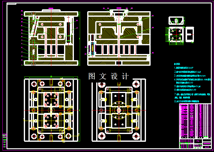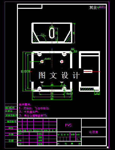 本次设计的零件家用常见的电源盒,所选材料耐磨,零件的侧面有穿线孔,因此需要两侧设计抽芯机构,这样分析后,确定一模两腔结构,设计模具装配图及零件图,编制计算过程。