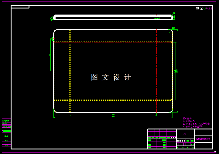 本次设计的零件,是带接口的电脑显示器的外壳,零件尺寸比较大,侧面有个小孔,用于接USB的孔,因此这部分需要设计抽芯结构,结合工件形状分析,设计一模两腔结构模具,选择合适的标准模架后绘制模具图纸。