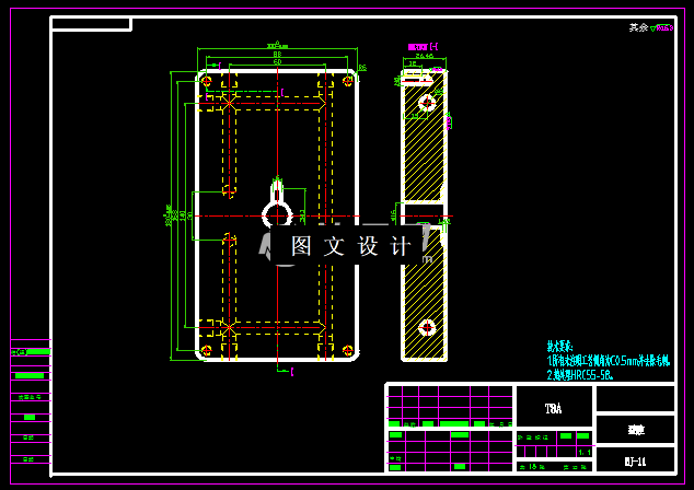 所设计的零件时个小型的线圈骨架,外形比较小,且对称,零件成工字形,因此,设计模具时要设计抽芯,而且时整体哈夫结构,设计这样的模具,设计两板模结构,详细尺寸后绘制模具结构图。