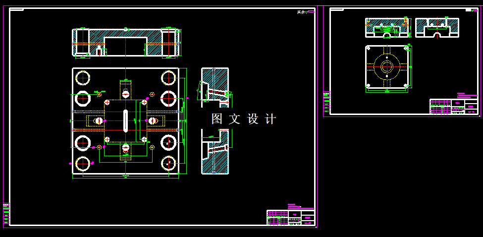 本次设计的零件为灭火器筒座,零件外形为圆筒形,零件比较简单,但是侧面有孔,且四边对称分布,因此需要设计四边抽芯,因此只能一模一件,将浇口设计底面,选择点浇口三板模,详细计算后,选择合适的模架,绘制模具图纸。