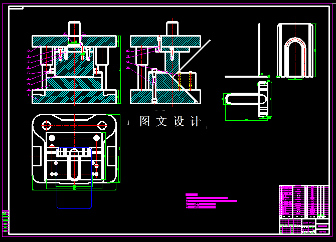 此零件是学生常与卡书的书架,工件形状简单,外形规则,中间有个缺口,冲完缺口后,单侧弯曲成90°,利用这个角度可以竖立书本。工件的外形尺寸比较大,因此设计复合模最合理,基本工序有落料,冲孔,弯曲,压筋,通过合理组合,选择落料冲孔压筋模,弯曲模,这两套方案。详细计算模具尺寸后,绘制模具图纸及零件图。