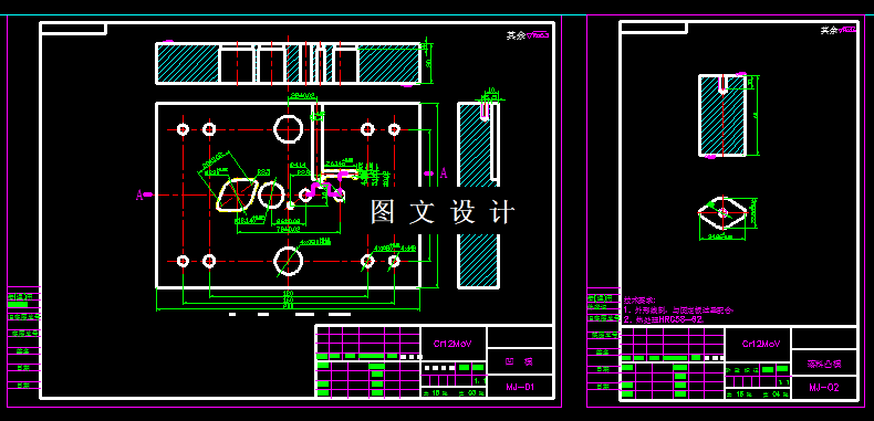 本次设计针对菱形垫圈,按设计要求,设计其级进模,该零件基本工序有落料和冲孔,因此设计冲孔落料级进模,选择四角导柱模架,上模采用弹性卸料装置,所冲零件和废料沿着凹模下掉,脱离模具。
