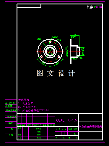 本次设计的是冲压玻璃升降器,此形状常常用来作为典型实例,但是本次设计的工艺方案,与以往不同,设计级进模,通过方案比较和详细计算,设计合理的模具结构,上模采用弹性卸料结构。