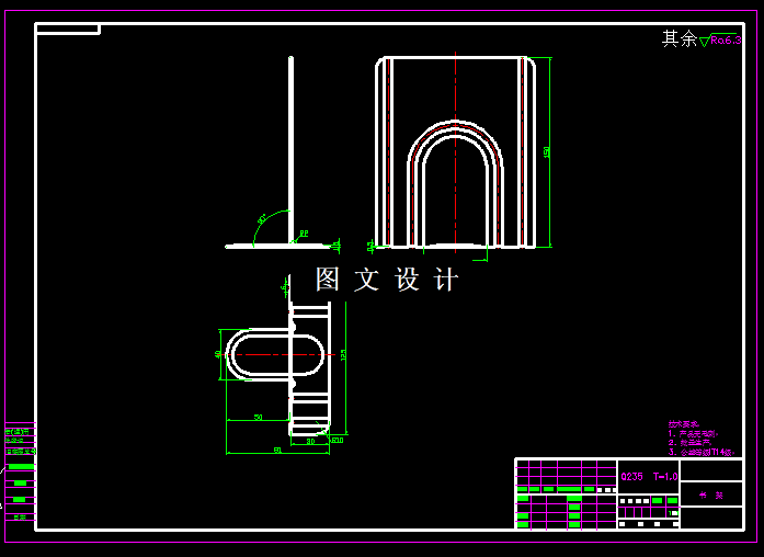 本次设计是针对学生常用的书档板,进行工艺分析和模具设计,通过计算工件尺寸,合理设计排样图,再根据排样方案,计算模具刃口和外形尺寸,从而绘制出模具结构图及模具零件图,标出详细尺寸。