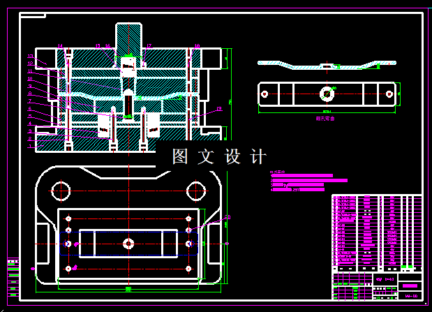 本次设计的内翻孔件,形状简单对称,难点就在于材料厚度比较大,是4.0mm,这样对展开尺寸计算,冲压力的计算,影响很大,工件中间还有个翻孔,计算预孔直径,以及展开尺寸,绘制出展开图,设计倒装复合模,将首次弯曲和中间翻孔复合成一套模具,最后再U形弯曲,绘制模具结构图及零件图。