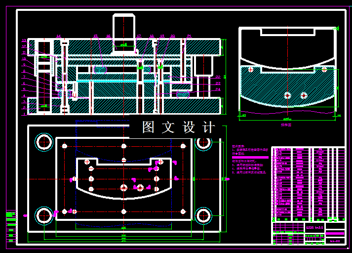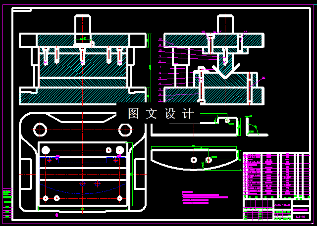 模具的弯曲工序模具,同时通过展开计算绘制展开图,设计零件的倒装落料冲孔复合模。