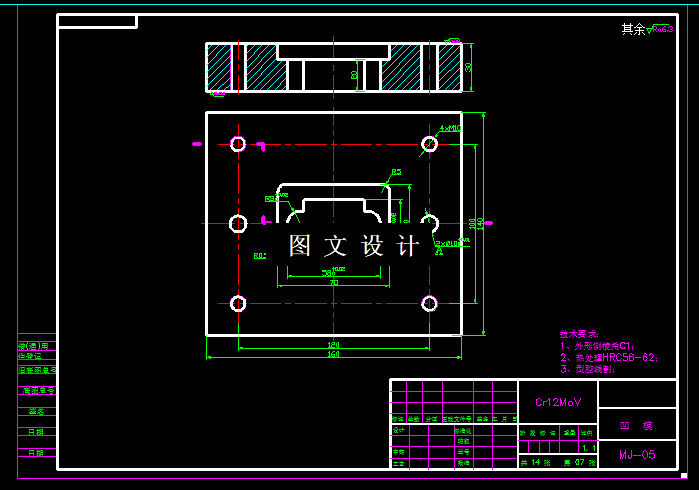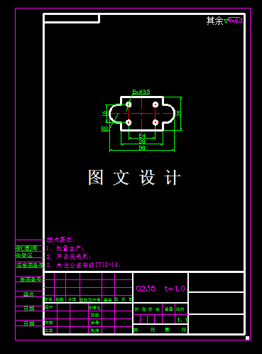 垫片零件,平板形,形状规则对称,内部圆孔对称分布,孔边与外形的最小距离满足复合的要求,结合生产需求,选择复合模的设计方案,计算模具刃口尺寸和外形尺寸,设计倒装复合模,绘制模具图纸。