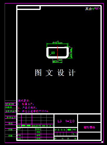 本次设计的零件比较简单,是个圆筒形零件,工件的底面有个圆孔,有三个基本工序,结合工件生产需求分析,选择三工序复合模,因此设计正装落料拉深冲孔模,利用三维软件绘制模具图纸,并绘制二维模具图。