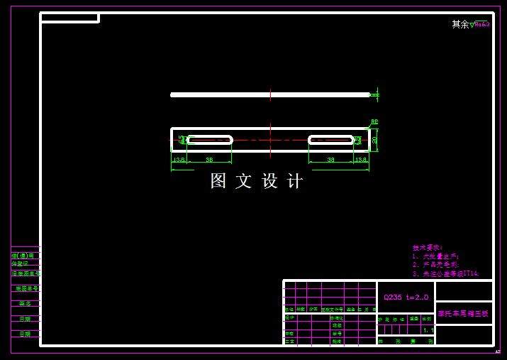 此零件外形成长方形,四角圆弧过渡,内部有两个孔,长形,两侧对称分布,孔边到边的距离比较大,基本工序