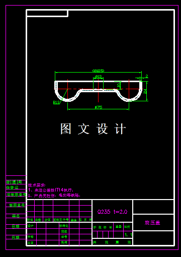 该零件,外形是个无凸缘的拉深形状,中间有个反拉深的平面,平面上还有孔,因此该零件的基本工序有落料,拉深,反拉深,冲孔,通过分析和计算,确定设计该零件的多工序复合模具,绘制模具2D和3D图纸,及模具运动仿真视频。