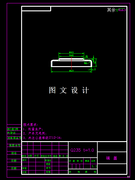 本次设计的零件是个无凸缘的直筒拉深件,但是工件的地面有3mm的拉深台阶,此台阶部分在拉深工艺计算中,