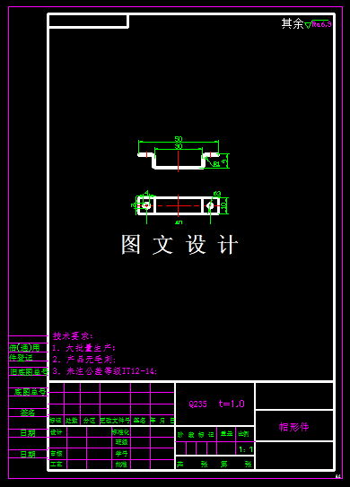本次零件是四角弯曲件,针对这样的零件,常见的设计方案是直接弯曲,采用上下模弹性卸料结构,
