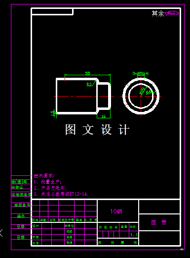 本次的设计就是针对已经加工好的圆筒形零件,侧面上的圆孔,进行模具设计,需要通过产品分析,确定采用的是上想冲裁结构,由于工件上有三个圆孔,孔的直径一样大,要设计一套模具,通过分析设计出合理的模具方案,并且把整体的模具图纸绘制出来.