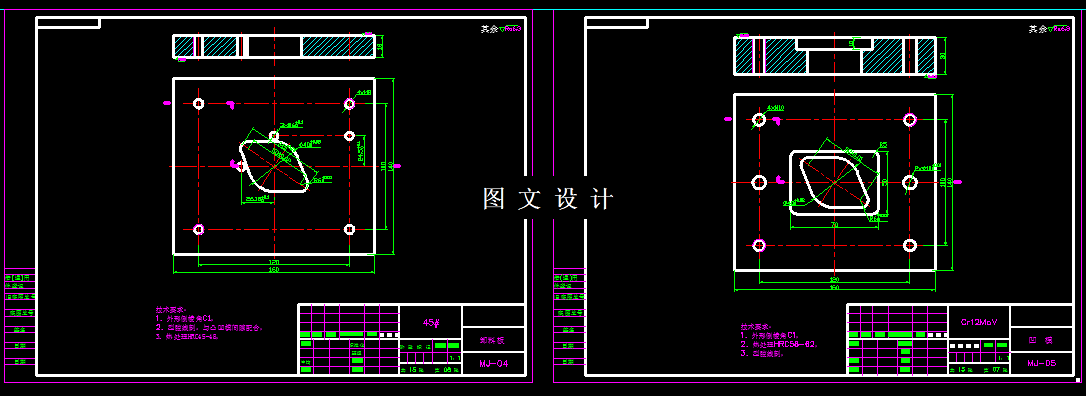 本次设计的是菱形零件,中间有个圆孔,采用直排的方法,显然材料利用率明显低了,因此采用错开的排样方法,这样才能提高利用率,再详细计算刃口及模具外形尺寸,绘制出合理的模具结构。