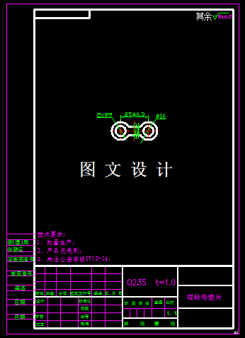 零件形状简单,类似哑铃形,因此该零件叫哑铃形垫片,孔边与外形边最小的尺寸为3.5mm,因此可以设计复合模,倒装结构最常见,通过详细计算和分析,绘制模具结构图和零件图。