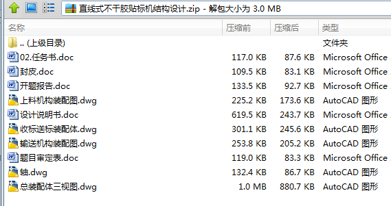 2、若题目上备注三维,则表示文件里包含三维源文件,由于三维组成零件数量较多,为保证预览截图的简洁性,本站将三维文件夹进行了打包。三维及CAD预览截图,均为本站电脑打开软件进行截图的,保证能够打开,下载原件超高清,下载后解压即可;