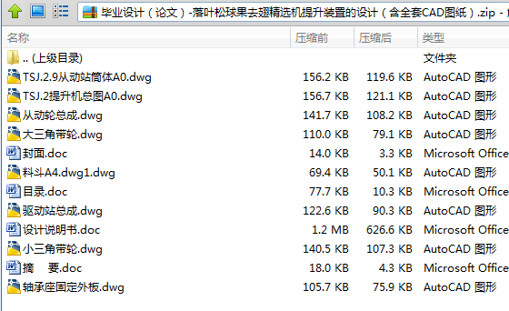本设计中落叶松球果去翅精选机提升装置的设计是斗式提升机的原理与设计上,经过吸收改进而设计制作的。也就是将斗式提升机更好的运用到球果采摘的过程中,进一步的发挥出他的作用。
