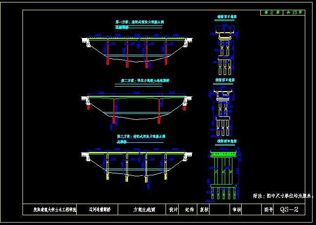 本桥址的桥型方案设计主要考虑通航的要求。根据专业知识和查阅参考资料,拟定了三个桥型方案:第一方案装配式预应力混凝土等截面简支箱梁桥;第二方案预应力混凝土连续梁桥;第三方案装配式预应力混凝土简支梁桥。通过方案比选,选择预应力混凝土连续梁桥作为推荐设计方案并对此方案进行了详细的设计。