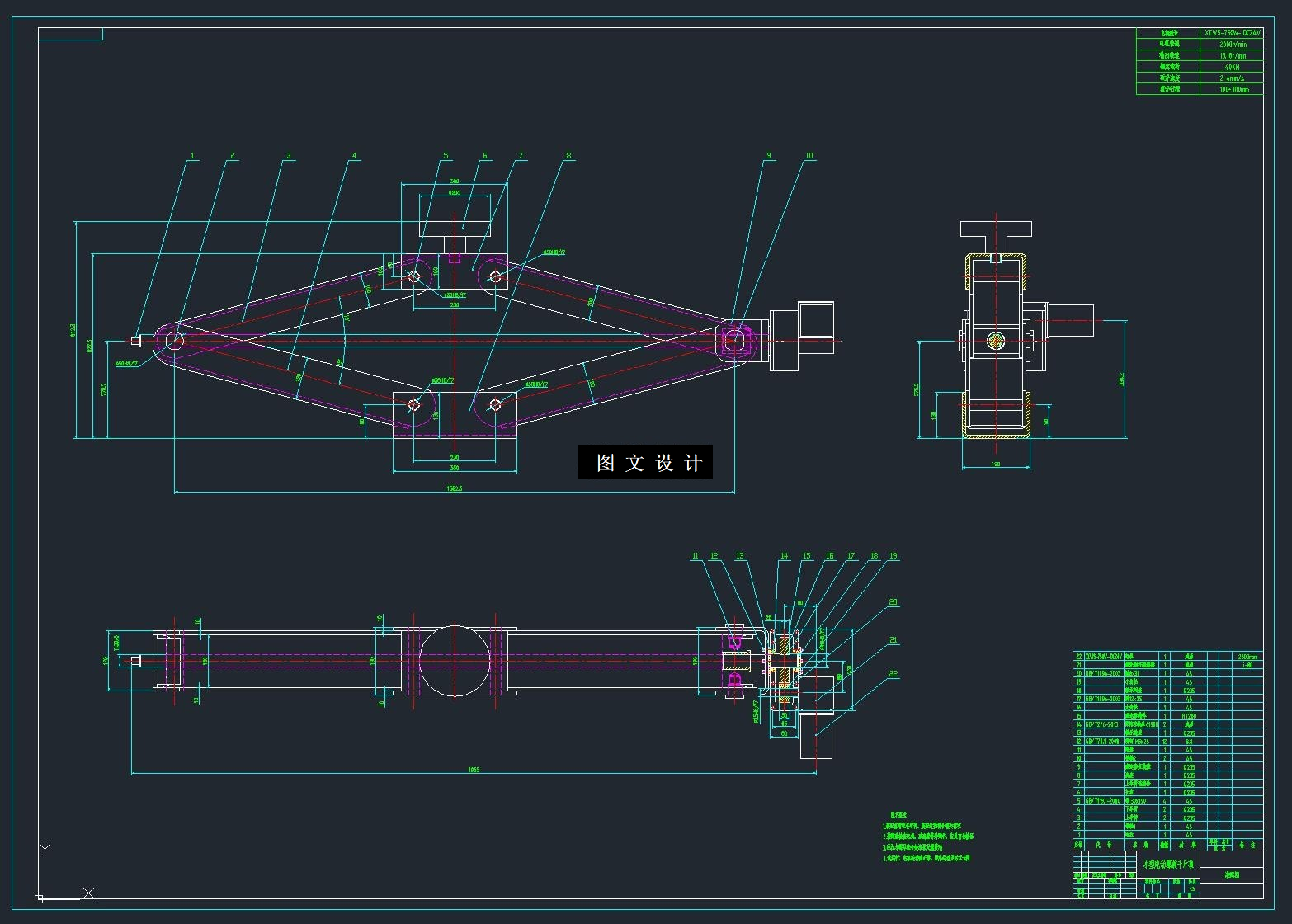 千斤顶是用刚顶举件作为工作装置,通过顶部托座或底部托爪在行程内顶升重物的传统顶举重物的工具,主要应用在厂矿、交运、铁路、汽车等行业。由于其结构简单轻巧、灵活可靠,方便携带等优点,在汽车维修得到广泛使用。本文归纳总结国内外千斤顶的发展概况,分析对比不同结构千斤顶的优缺点,确定了千斤顶的传动方案,根据设计参数,设计了一款通过小型直流电机驱动的螺旋千斤顶。通过受力分析、速度分析确定了千斤顶的尺寸参数,并对主要零部件进行了详细设计,完成了小型直流电机驱动的螺旋千斤顶的装配图和零件图绘制。该千斤顶采用直流24VDC蓄电池为电源,使用直流电动机驱动,且具有轻便灵活、顶力大的特点。