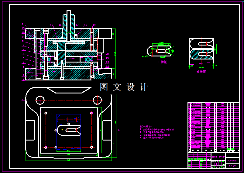 本次设计的垫片,外形不规则,单侧还有个很深的缺口,材料为65Mn钢,厚度t=1.0,此材料属于优质碳素结构钢,其抗剪强度 =600MPa,抗拉强度 =750MPa,屈服极限400MPa,通过对材料和工件形状分析,选择倒装模具结构设计。