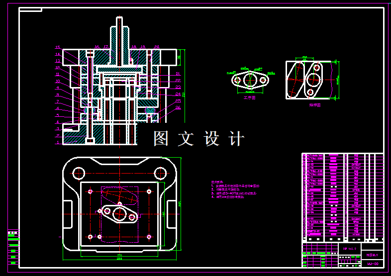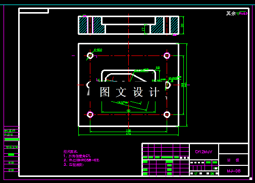 本次设计的零件是一个平板,形状规则对称,孔边到外形边的距离能满足复合模的要求,因此该设计选择倒装复合模,此类模具结构最为常见。计算模具尺寸后,绘制模具结构及零件图纸。