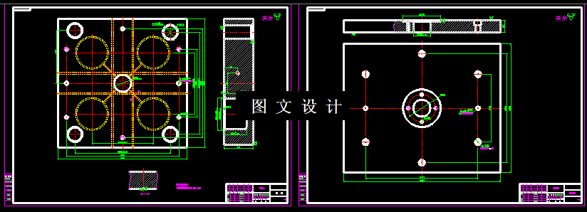 本次设计塑料仪表盖,是个底面没有孔的盖形零件,外形没有特殊的形状,因此可以采用脱模板,对工件进行脱模,本次设计一模四件结构,合理分布后,绘制模具结构图及非标零件图