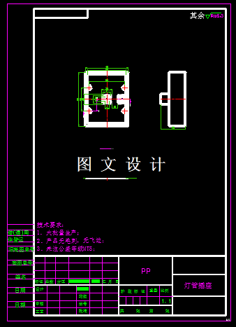 本次设计的是一个灯管插座零件,工件外形成矩形,中间有孔和台阶,设计模具时,型腔和型芯结构相对复杂,但是工件没有侧孔,没有内扣,不需要设计抽芯机构,是典型的两板模。