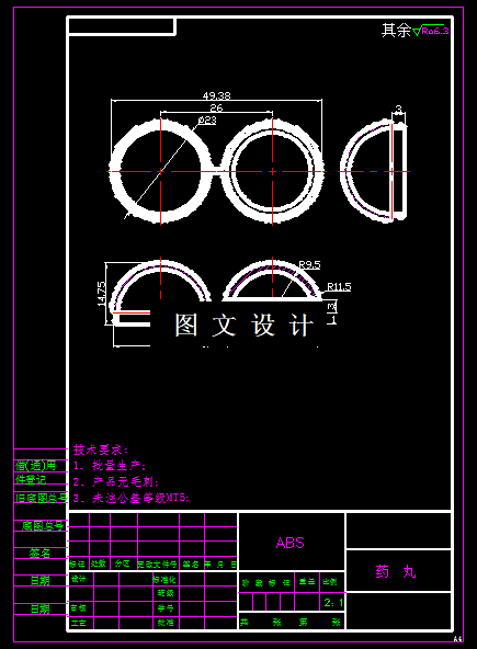 本次设计的零件是一个用于安置药丸的外壳,整体是一个球形,中间分开后成两半,中间连着,零件外形比较小,因此设计一模多腔,提高生产效率,通过详细计算后,设计出合理的模具结构。