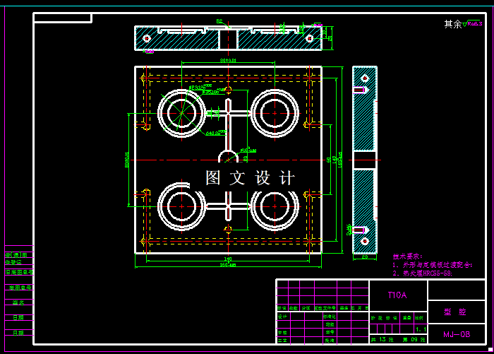 本次设计的支架,是个塑料件,外形成圆形,类似盒形,中间有个圆孔,通过对该零件形状和材料的分析,选择一模四腔结构,合理分布后,设计出合理的结构,选择合适的注塑机。