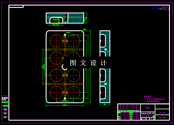 本次设计的是一个旋钮,零件外形为圆形,尺寸比较小,结构相对简单,因此设计模具时,无需设计抽芯机构,直接设计两板模即可,通过详细计算后,设计合理的模具结构图,以及非标零件图。