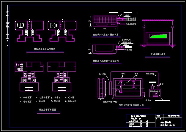 空调水系统、风系统图,平面图;防火排烟系统图,送风及排风系统图及平面图;具体剖面图,安装祥图,机房布置及系统(流程)图。