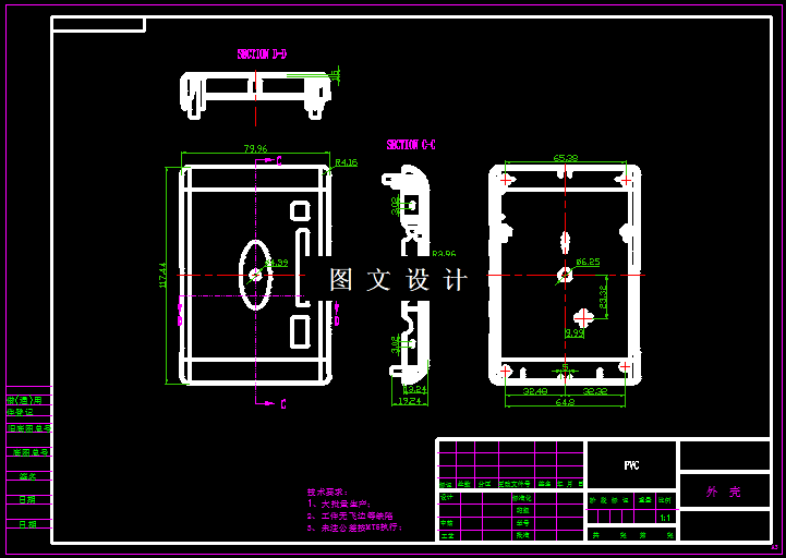 本次设计的零件,是个常见的外壳零件,形状复杂,底面还有孔,侧面也有孔,不过侧面孔无法直接脱模,要设计抽芯机构,所以计算模具尺寸时比较复杂,本次设计通过详细计算后,设计出合理的结构。