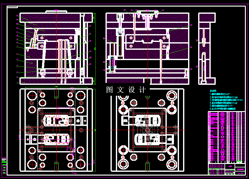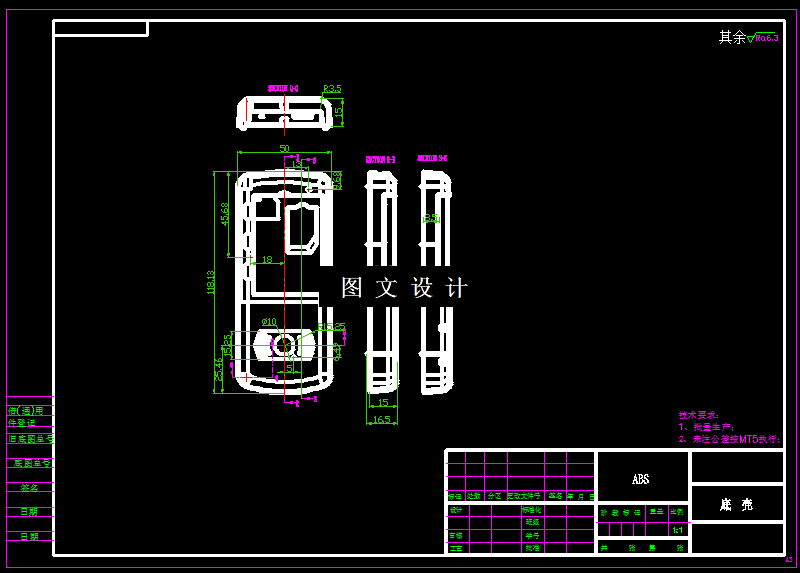 本次设计的零件是底壳,零件形状复杂,不仅底面有孔,侧面还有台阶,中间还有加强筋,因此设计模具时需要设计抽芯机构,通过详细计算,设计滑块尺寸,通过整体设计模具结构,绘制模具图纸,记录设计计算过程。