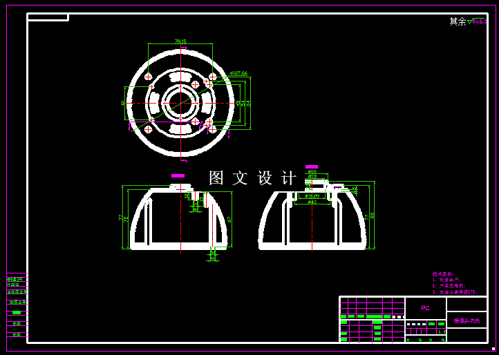 本次设计的零件,是摄像头内壳,工件外形为圆形,内部结构复杂,设计型芯和型腔时,镶块设计难度增大,模具结构采用两板模,结构相对简单,本次设计主要针对该零件,进行工艺设计和计算,设计模具结构和非标零件图。