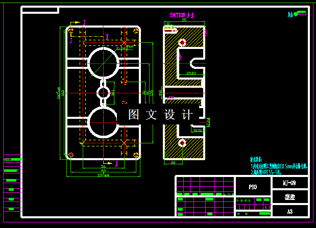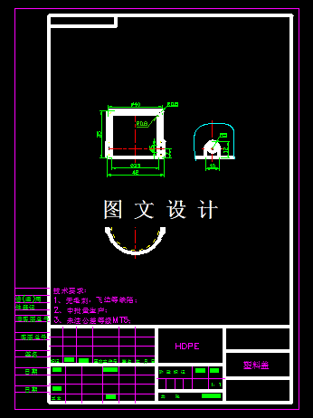 本次设计的零件为塑料盖,工件外形成圆形,两侧有两个圆孔,因此两侧需要设计抽芯机构,根据生产量的需求,本次设计一模两腔,这样可以将抽芯机构设计在模具两侧,更为合理,具体见模具结构图。
