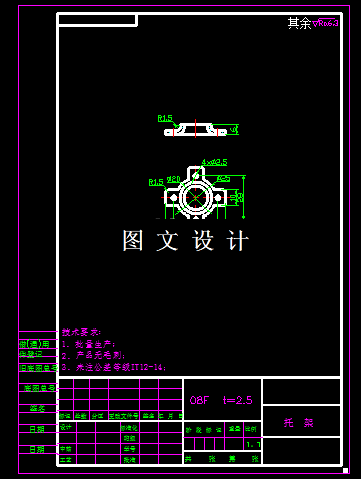 本次设计的托架,工件中间有个翻孔,外形成麻花状,对称零件,孔边到边的距离很小,因此需要先翻孔,然后落料,这样对工件的外形才没有影响,通过对工件预孔尺寸计算,工序的有机排样,设计出合理的模具结构。