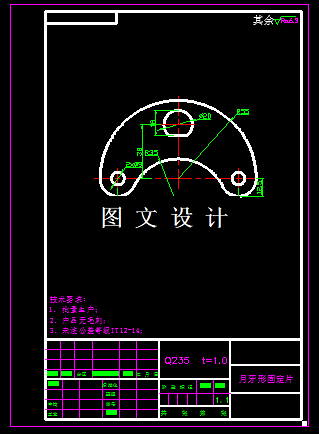 本设计的固定片,外形成月牙状,因此也叫月牙形固定片,是一个平板,中间有孔,因此可以设计成复合模,也可以生成级进模,均符合要求,本次通过合理的排样设计,设计该零件的冲压级进模,绘制模具结构图及非标零件图。