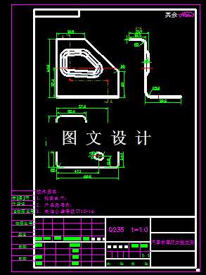 本次设计的是汽车前大灯上的安装支架,通过对该支架的形状分析,尺寸计算,展开尺寸计算,确定该零件有落料,拉深,冲孔,弯曲等基本工序,因此需要设计的模具比较多,工序复杂,但是如果采用多工序级进模,就减少很大的成本,本次设计针对这部分进行详细的计算和设计。