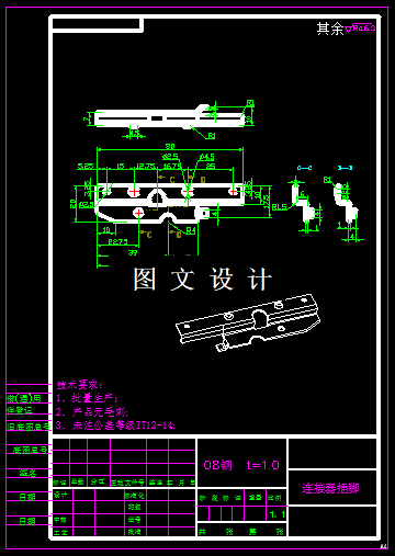 本次设计的零件,形状复杂,是个Z形零件,外形不规则,通过计算得到展开图形,孔边到外形边的距离很小,因此不适合采用复合模生产,所以本次设计冲压级进模,设计出合理的排样图,然后绘制模具结构图和非标零件图。