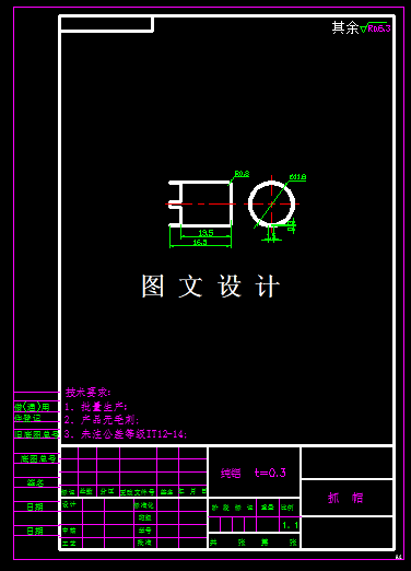 本次设计的抓帽,零件外形尺寸很小,形状规则,拉深零件口部带有齿形,很显然,拉深工序无法实现口部的齿形,因此需要通过切边的方式实现,如果采用侧向切齿,零件小,所以操作很不方便,因此考虑采用切边成齿,然后再翻边成型的工艺方案,具体见CAD图纸和设计分析。