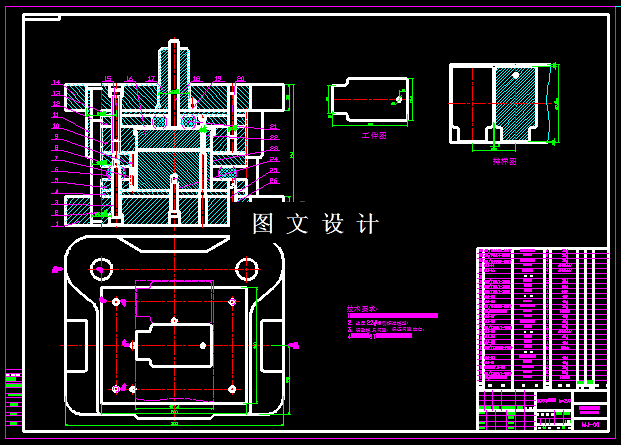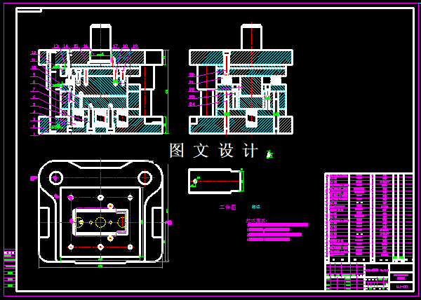 本次设计的前门滑槽下支架,工件形状简单,通过多次弯曲成型,通过理论计算后,展开后是一个平板,因此平板可以采用冲裁模具实现,然后设计两套弯曲模,实现该零件,因此一共需要三套模具,本次设计就是针对此三套模具,进行详细计算和绘图。