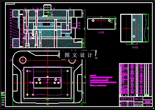 本次设计的把手补强弹片,属于钣金零件,因此可以选择冲压的方式生产,通过对零件的工艺分析,选择落料冲孔模,两次弯曲工序,共三套模具实现,通过详细计算模具尺寸后,绘制模具结构图,记录计算过程。