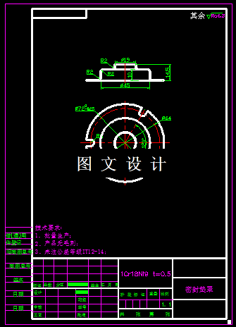 本次设计的零件形状规则,工序简单,外形不是规则圆形,因此需要切边工序,所以这个零件是个典型的凸缘拉深件,通过详细计算得到工件展开图,基本工序有落料,拉深,切边,冲孔,翻孔,结合工序组合,本次设计其中典型的落料拉深,冲孔翻孔模。
