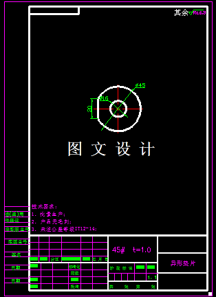 本次设计的异形垫片,外形为圆形,侧面有个截面,所以形状不规则,中间有一个圆孔,在工件的正中心,因此设计倒装结构复合模具最合理,分析后通过详细计算模具尺寸,绘制模具结构图和零件图。