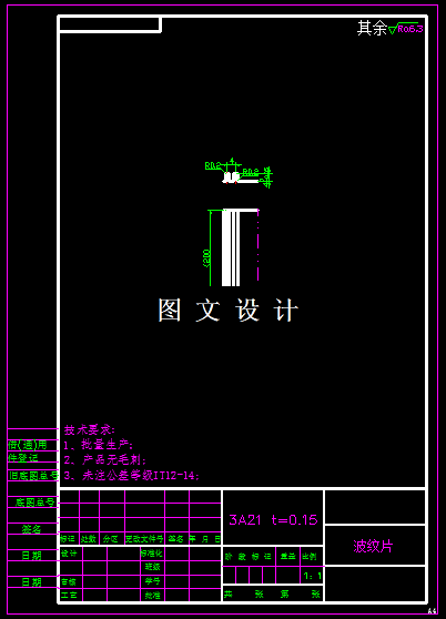 本次设计的波纹片,是一个条形件,长度不确定,因此需要通过很多次的压制,而且板料的宽度不确定,最大尺寸为200mm,因此设计的模具要控制在200mm内的任何尺寸都可以生产,这就给模具结构增加了难度。