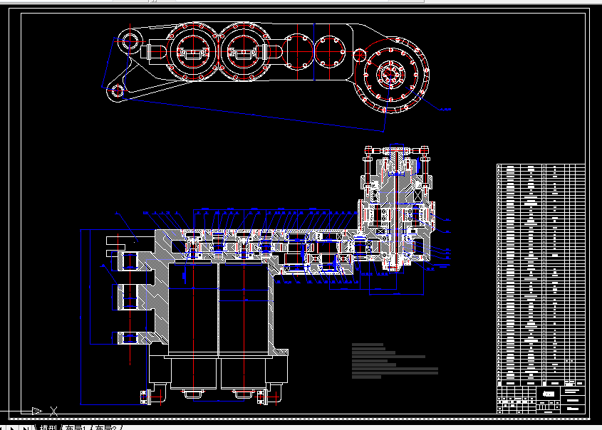 本说明书主要介绍了采煤机截割部的设计计算。MG2×160/730-AWD型采煤机截割部主要是由四级齿轮传动组成,截割部电机放在摇臂内横向布置,电动机输出的动力经由三级直齿圆拄齿轮和行星轮系的传动,最后驱动滚筒旋转。截割部采用三行星单浮动结构,减小了结构尺寸,采用大角度弯摇臂设计,加大了过煤空间,提高了装煤效果。