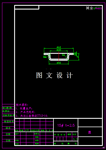 本次设计的盖类零件,是小型件,拉深高度只有14mm,因此可以判定一次拉深成型,通过详细计算后,确定拉深系数,设计正装落料拉深复合模,该类模具是典型的复合模。
