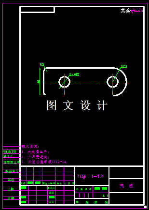 本次设计的垫板,形状简单,适用模具批量生产,零件材料垫板,厚度t=1.4mm,选择的材料为10#钢,此类材料属于普通钢板,采用冲裁类结构最为合适。