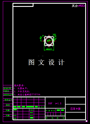 此制件的形状较简单,外形为圆形,有四个耳朵,对称分布,因此叫四耳卡圈,根据孔边距离,以及孔的直径大小,材料厚度和材质等基本参数分析,该零件符合复合模的设计要求,因此设计倒装复合模。
